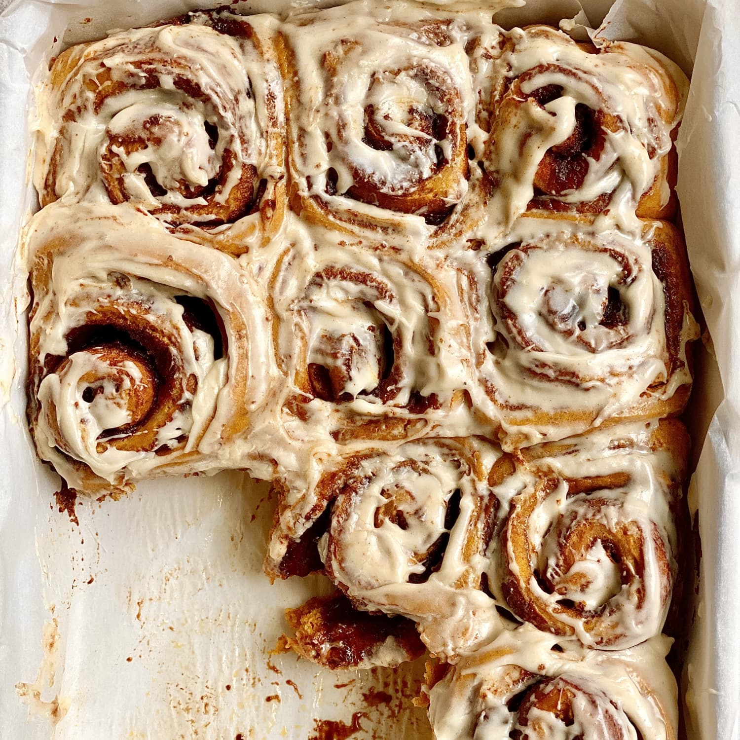 Fluffy Pumpkin Cinnamon Rolls Recipe With Maple Icing The Kitchn